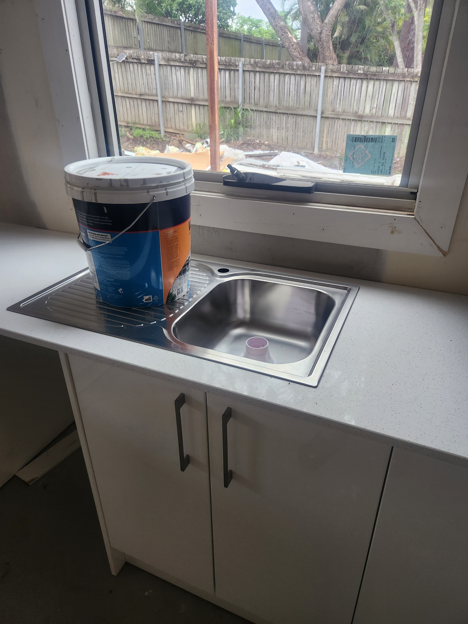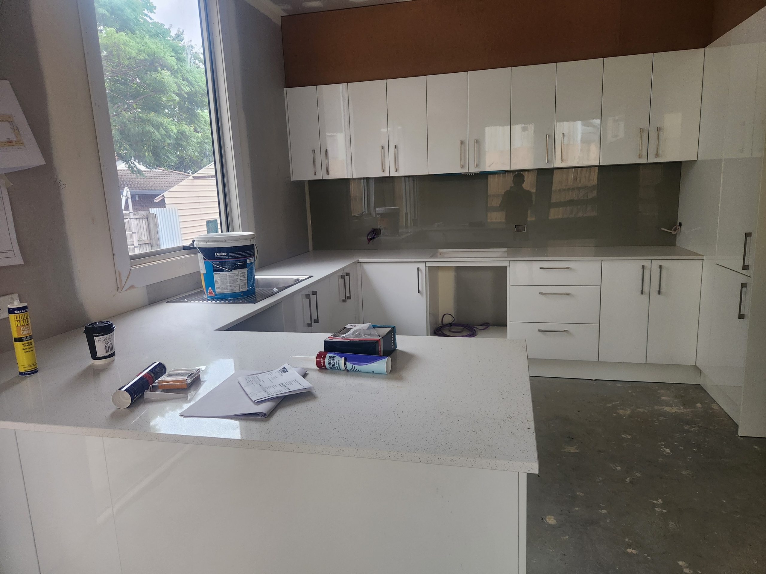 Kitchen: The kitchen bench has been installed, and the overall kitchen layout is progressing successfully.