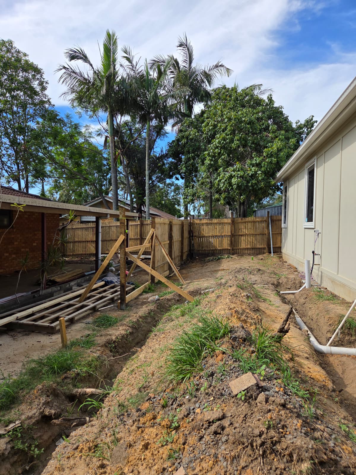 Construction of the fence dividing the two dwellings has commenced.